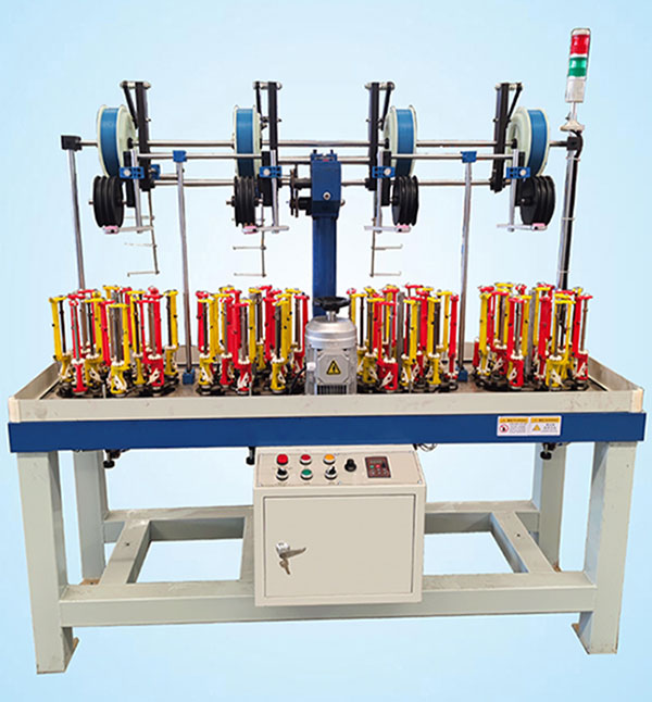 用途:織帶(鞋帶、服飾帶、松緊帶、波浪帶、滾邊帶、肩條帶等),測量繩、手提繩、拖車?yán)K、工具用繩,高空作業(yè)繩等各種繩帶的編織機。